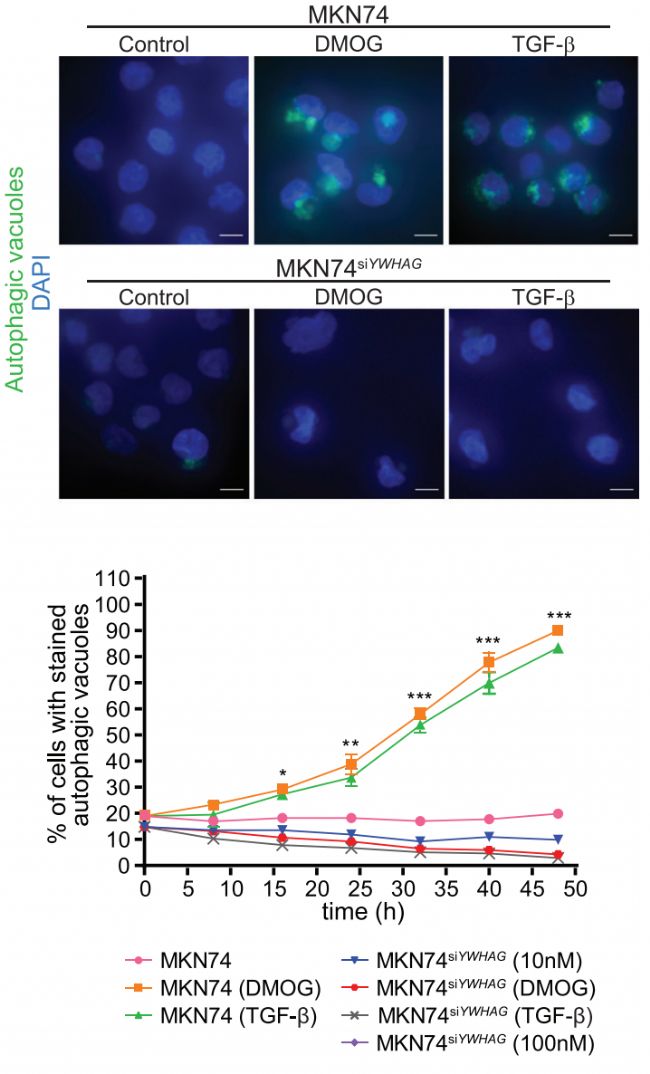 - EMT是高能耗過(guò)程,伴隨細(xì)胞內(nèi)活性氧(ROS)水平顯著升高。YWHAG 通過(guò)增強(qiáng)細(xì)胞自噬緩解氧化應(yīng)激,保護(hù)癌細(xì)胞免于氧化性細(xì)胞死亡。