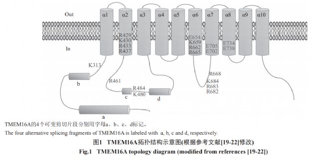 已經證明DOG1/TMEM16A具有8個跨膜結構域,并且該通道以兩種CaCC蛋白的二聚體形式組裝。它的大而非選擇性的通道孔,或p環(huán),位于第五和第六跨膜結構域之間,它也允許除Cl以外的其他帶負電荷的離子滲透。DOG1在頭頸癌和食管癌中的擴增以及在胃腸道間質瘤(GIST)中的過表達與癌癥發(fā)展有關。