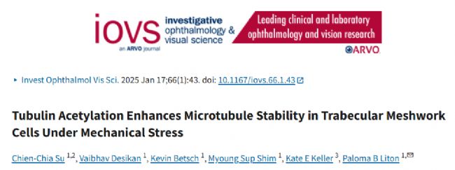 參考文獻(xiàn):Su CC, Desikan V, Betsch K, Shim MS, Keller KE, Liton PB. Tubulin Acetylation Enhances Microtubule Stability in Trabecular Meshwork Cells Under Mechanical Stress. Invest Ophthalmol Vis Sci. 2025 Jan 2;66(1):43. doi: 10.1167/iovs.66.1.43. PMID: 39820277; PMCID: PMC11753476.