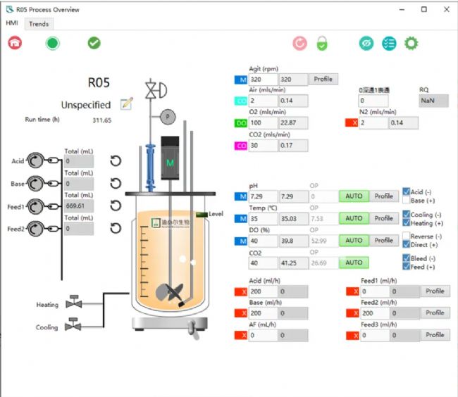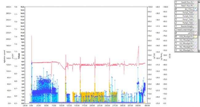隨后,通過Air和CO₂與CO₂電極級(jí)聯(lián)控制,實(shí)現(xiàn)反饋控制,將培養(yǎng)過程中的pCO₂控制在設(shè)定值附近。最終實(shí)現(xiàn)pCO₂全過程可監(jiān)控,可控制,為研究人員的工藝優(yōu)化提供新的研究方向。