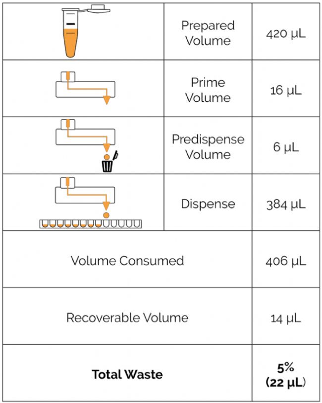 圖2:憑借MANTIS的低死體積,及用移液管吸頭直接裝載試劑和,保證了最少的試劑浪費,例如分配逆轉(zhuǎn)錄母料混合物。