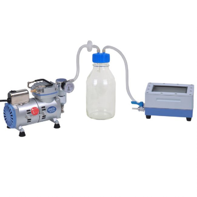 裝置內(nèi)標(biāo)配1臺R300無油真空抽濾,插上電源、開機(jī)即可使用,易于操作,無需使用經(jīng)驗(yàn)。抽濾泵能提供穩(wěn)定、可控的負(fù)壓吸引力(標(biāo)配調(diào)節(jié)閥,可控制負(fù)壓吸力和過濾速度)。 這是整個裝置運(yùn)作的“心臟”。 通過電機(jī)驅(qū)動,將整個密閉系統(tǒng)內(nèi)的空氣持續(xù)抽出,在過濾座腔室和廢液瓶內(nèi)形成低于大氣壓的環(huán)境。這個壓差是液體穿過濾膜進(jìn)入廢液瓶的根本動力。此外R300前置了1組緩沖杯組件,出了具有一定防倒吸能力外,還能起到使負(fù)壓變得持續(xù)、平穩(wěn)的效果。壓力波動過大會導(dǎo)致不同孔位間的過濾速度不一致,影響結(jié)果的均一性和回收率,而且壓力過高可能擠壓樣本或損壞濾膜,壓力過低則過濾緩慢甚至停滯。