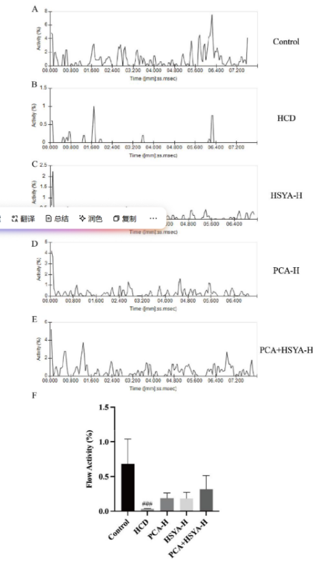 高脂血癥是最常見的血脂水平異常疾病之一,也是導(dǎo)致心血管疾病發(fā)生的主要危險(xiǎn)因素之一,可導(dǎo)致動(dòng)脈粥樣硬化。在本研究中,建立了HCD喂養(yǎng)的高脂血癥斑馬魚模型,斑馬魚在研究脂質(zhì)代謝和脂質(zhì)異常方面的優(yōu)勢(shì)在于其光學(xué)透明性。PCA和HSYA分別是丹參和紅花的活性成分,在高脂血癥模型中,PCA、HSYA和PCA + HSYA對(duì)高脂血癥斑馬魚具有有效的降脂作用,且呈現(xiàn)劑量依賴性。并且,PCA +HSYA可以改善斑馬魚的血液高凝狀態(tài),同時(shí)PCA和HSYA對(duì)改善肝功能有明顯效果。這些結(jié)果可能為研究PCA和HSYA改善高脂血癥的治療機(jī)制以及為未來高脂血癥的臨床應(yīng)用開發(fā)相關(guān)藥物提供新的思路。