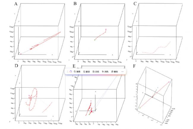 結(jié)果表明,成年雄性和雌性蛾子的活動軌跡主要由鋸齒形模式、圓形運(yùn)動、拋物線軌跡和線性路徑組成(圖2)。