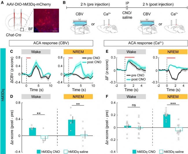 (C) hM3Dq組CNO給藥前后ACA區(qū)CBV響應(yīng)。