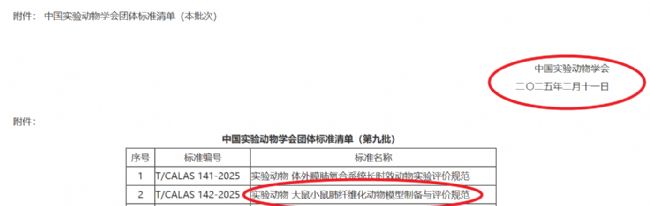 2025年2月,《實(shí)驗(yàn)動物-大鼠小鼠肺纖維化動物模型制備與評價(jià)規(guī)范》團(tuán)體標(biāo)準(zhǔn)T/CALAS 142-2025正式發(fā)布,該標(biāo)準(zhǔn)由中國中醫(yī)科學(xué)院中藥研究所牽頭,多所中醫(yī)藥大學(xué)共同參與研制,為大鼠/小鼠肺纖維化動物模型的制備與評價(jià)提供了統(tǒng)一規(guī)范。