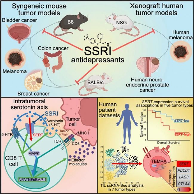 該研究不僅揭示了腫瘤微環(huán)境血清素軸的重要免疫調(diào)節(jié)功能,更將SERT定義為新型免疫檢查點,為SSRIs作為腫瘤免疫治療新策略提供了理論依據(jù)。