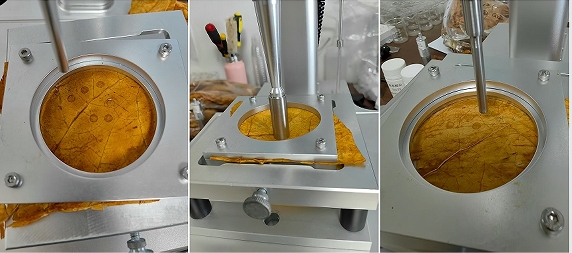 測試煙葉樣品固定在穿透臺上,要求每次測試煙葉樣品固定的長度保持一致。