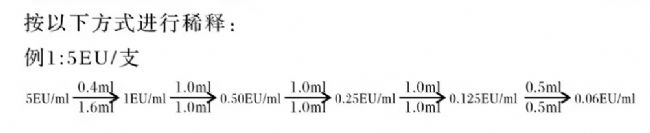 取內(nèi)毒素標(biāo)準(zhǔn)品5EU/ml一支,并加入1000μl檢查用水。