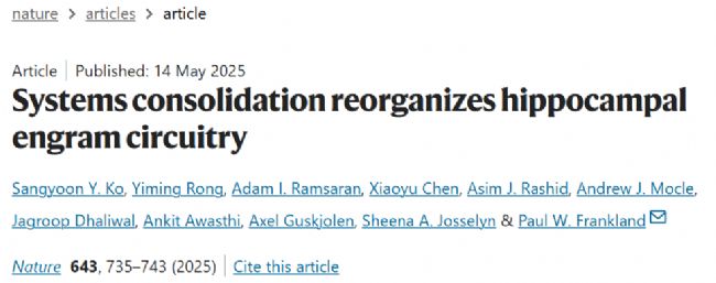 2025年5月14日,加拿大的學者在Nature期刊上發(fā)表了題名為“Systems consolidation reorganizes hippocampal engram circuitry”的研究論文。這項研究揭示了海馬神經發(fā)生驅動記憶印跡環(huán)路重組進而調控記憶精確度的機制。