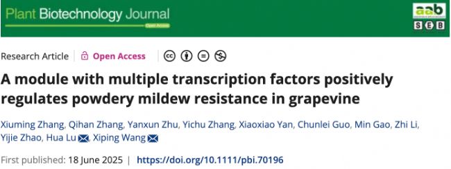 2025年6月18日,西北農(nóng)林科技大學(xué)園藝學(xué)院王西平教授課題組在Plant Biotechnology Journa(IF=10.5)發(fā)表了題為“A module with multiple transcription factors positively regulates powdery mildew resistance in grapevine”的研究論文。該研究借助DAP-seq技術(shù)揭示了中國(guó)野生毛葡萄通過(guò)VqLIMYB-VqWRKY46/VqNF-YC9-VqDSC1信號(hào)模塊調(diào)控白粉病抗性的分子機(jī)制,為葡萄抗病分子育種提供了新的理論基礎(chǔ)。