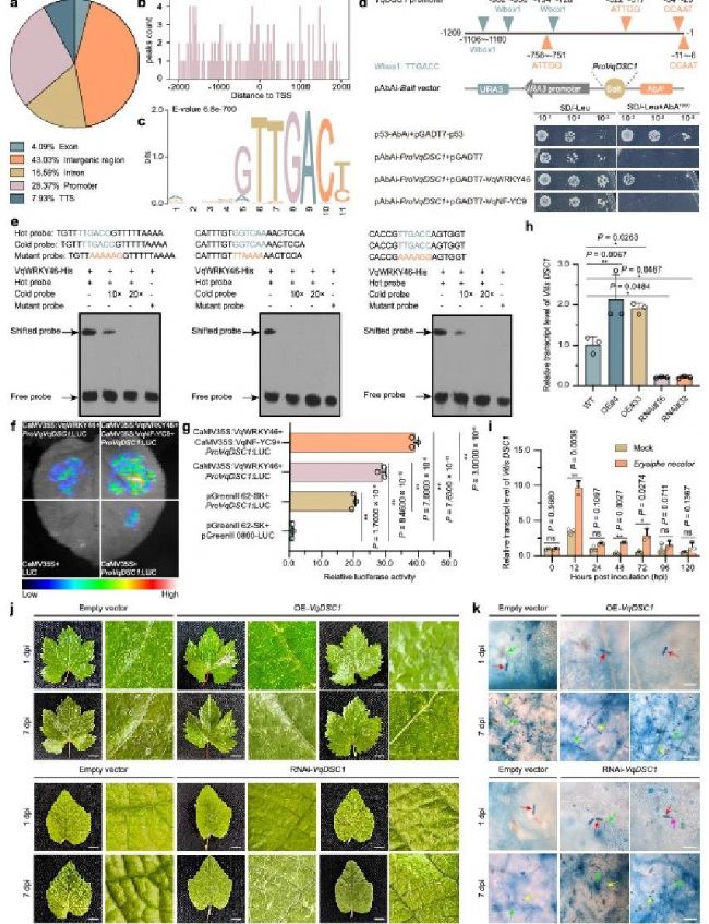圖1. VqWRKY46增強(qiáng)葡萄對(duì)白粉病的抗性。