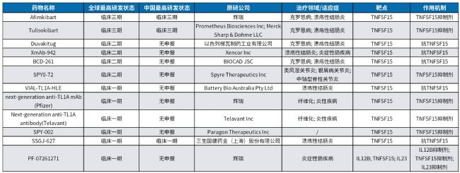 表1. 部分靶向TL1A靶點藥物研發(fā)進展