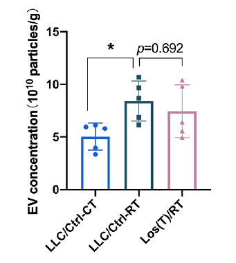 在閆衛(wèi)教授組的研究人員構(gòu)建的多組學研究中,納米流式檢測技術(shù)被整合入標準化實驗流程。研究團隊使用ApogeeFlow系統(tǒng)對腫瘤源性EVs進行絕對定量分析(論文中STAR Methods章節(jié)),發(fā)現(xiàn)接受放療的小鼠乳腺癌模型(4T1/Ctrl-RT)分泌的EVs數(shù)量較對照組顯著提升。該數(shù)據(jù)直接證實了"放療觸發(fā)腫瘤EVs超量分泌"的核心假設(shè),為后續(xù)機制探索奠定基礎(chǔ)。這種方法學設(shè)計通過Cell Metabolism的評審,彰顯了納米流式技術(shù)在復雜生物系統(tǒng)研究中的可靠性。