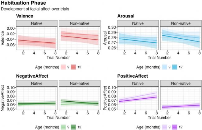 傳統(tǒng)研究多依賴注視測(cè)量,卻難全面捕捉嬰兒復(fù)雜反應(yīng)。本研究聚焦嬰兒語音感知中面部情感變化,引入自動(dòng)化面部表情分析,探究了嬰兒在面對(duì)母語與非母語時(shí)的面部變化與感知調(diào)諧能力之間的關(guān)系,旨在挖掘面部表情分析作為注視測(cè)量補(bǔ)充的潛力,為早期語言發(fā)展研究提供更豐富、精準(zhǔn)的工具與視角(Tsuji et al., 2025)