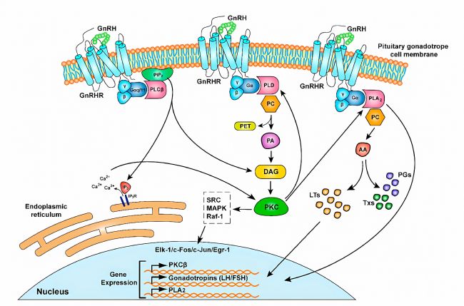 如上圖所示,GnRHR信號(hào)通路主要以下通過(guò)幾種機(jī)制實(shí)現(xiàn):