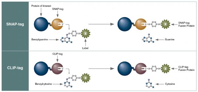 SNAP Tag 作為新一代的蛋白標(biāo)簽技術(shù),以其極高的專一性和出色的穩(wěn)定性脫穎而出。它的最大亮點(diǎn)在于能夠適用于多種復(fù)雜環(huán)境下的蛋白質(zhì)檢測與純化,無論是在活細(xì)胞內(nèi)、溶液中,還是在固態(tài)相(如 SDS - PAGE gels)中,都能大顯身手。SNAP Tag 源于人的 O6 - 甲基鳥嘌呤 - DNA 甲基轉(zhuǎn)移酶,其與底物的結(jié)合具有高度特異性。在反應(yīng)過程中,SNAP Tag 所帶的活性巰基位點(diǎn)會與苯甲基鳥嘌呤所攜帶的側(cè)鏈苯甲基基團(tuán)發(fā)生共價(jià)結(jié)合,釋放出鳥嘌呤,從而使目的蛋白攜帶上苯甲基基團(tuán)所帶的標(biāo)記物。