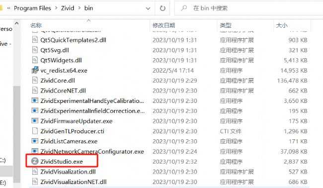 找到電腦中軟件安裝位置,打開bin文件夾,找到zivid studio打開即可進(jìn)入到軟件圖形化界面。