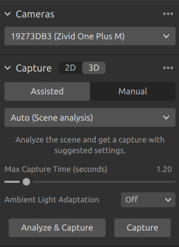 捕獲按鈕 Capture:會(huì)直接使用輔助捕獲建議的設(shè)置執(zhí)行捕獲,無需額外的場景分析。