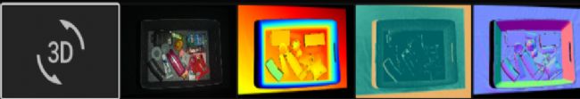 可視化點(diǎn)云、彩色圖像 (2D)、深度圖 (Z 軸)、SNR(信噪比)圖和法線圖。