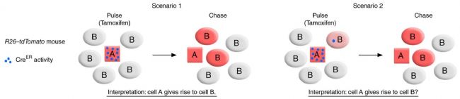通常,細胞或組織中的特異性 Marker 意味著啟動子的活性在這種細胞類型中相對較高,而并非在其他細胞中完全不表達。在其他細胞中,目的啟動子也可能被弱激活,這種現(xiàn)象也被叫做異位表達。異位表達對譜系追蹤的影響很大,常常會導致一些關(guān)于細胞命運的爭議。