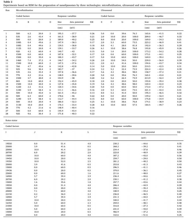采用響應面法(RSM)對三種均質技術——微射流(MF)、超聲(US)和轉子-定子(RS)——在包埋高油酸棕櫚油(HOPO)納米脂質體制備中的工藝與配方進行了系統(tǒng)優(yōu)化。