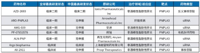 表1. 部分靶向PNPLA3靶點(diǎn)藥物研發(fā)進(jìn)展