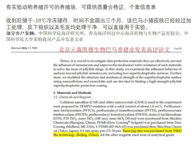 北京YSKD 元森凱德生物公司巴馬香豬皮,有資質(zhì),并已經(jīng)被發(fā)表高分論文