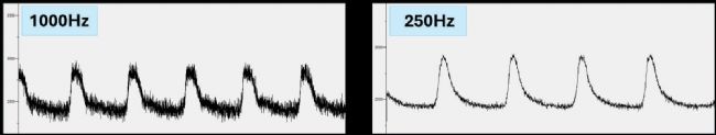 圖1.較低的數(shù)據(jù)采集速率可能會導(dǎo)致欠采樣和數(shù)據(jù)信息減少,盡管信號更干凈。