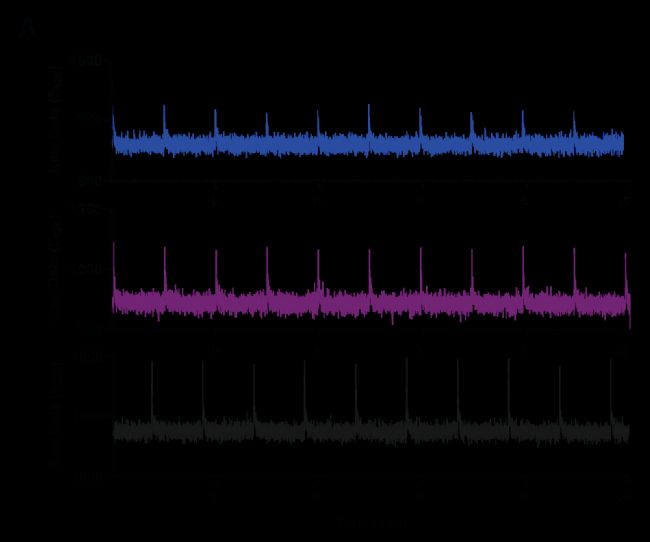 熒光記錄使用lonOptix MultiCell 系統(tǒng)進(jìn)行。FluoVolt的激發(fā)由470納米LED(Cairn)提供,并通過470/40x帶通濾波器。經(jīng)過濾波的激發(fā)光在顯微鏡內(nèi)被505納米二向色長通鏡(Chroma)反射,并通過UPlanXApo40x0.95 NA物鏡(olympus)聚焦于樣品上。FluoVolt的熒光信號經(jīng)過535/36帶通濾波器過濾,并使用光電倍增管進(jìn)行檢測。主要的心肌細(xì)胞通過MyoPacer(lonoptix)進(jìn)行電刺激,采用雙相脈沖模式(4毫秒持續(xù)時間,1赫茲頻率,20伏電壓。iPSC衍生的心肌細(xì)胞在無刺激情況下被記錄。