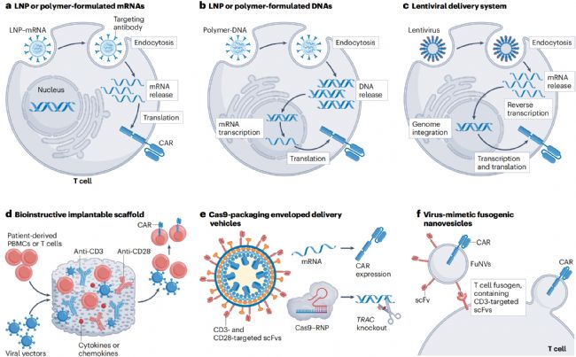 2、臨床前模型中 T 細(xì)胞體內(nèi) CAR 工程策略概述