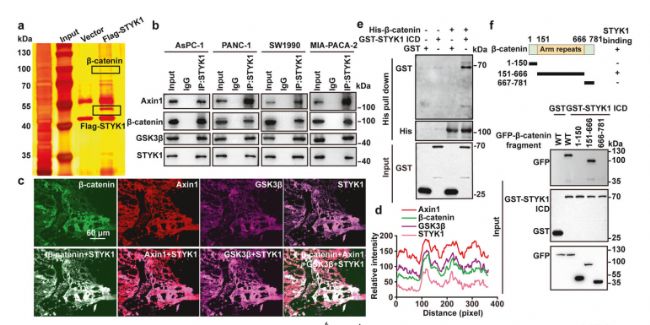 STYK1缺失抑制胰腺癌細(xì)胞的生長(zhǎng)。此外,作者還闡明了STYK1通過與GSK3β和β-catenin結(jié)合來激活Wnt/β-catenin信號(hào)傳導(dǎo)的作用。clathrin/ AP2介導(dǎo)的STYK1內(nèi)化和GSK3β隔離在β-catenin復(fù)合體的失活和隨后的Wnt/β-catenin信號(hào)傳導(dǎo)中發(fā)揮了重要作用。