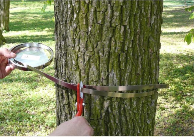 1)剪一段不銹鋼帶,長度超過樹干周長25厘米。注意避免因彎曲導致長度不夠!