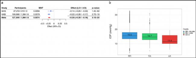 圖3. 攜帶ANGPTL7 pLOF突變?nèi)巳旱钠骄蹓海↖OP)明顯低于非攜帶者 [6]。