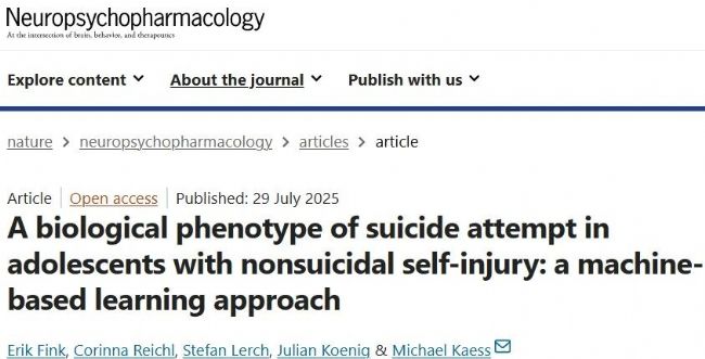 近日,瑞士伯爾尼大學(xué)與德國海德堡大學(xué)團(tuán)隊在 Neuropsychopharmacology 發(fā)表了題為《A biological phenotype of suicide attempt in adolescents with nonsuicidal self-injury: a machine-based learning approach》的研究,揭示了通過機(jī)器學(xué)習(xí)結(jié)合生物學(xué)信號可更準(zhǔn)確識別自殘青少年的潛在自殺風(fēng)險。