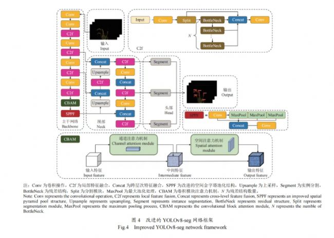 1)使用光流法對數(shù)據(jù)集進行預處理、使用卷積模塊注意力機制(convolutional block attention module,CBAM) 改進YOLOv8-seg網(wǎng)絡(luò)。結(jié)果表明,改進的YOLOv8-seg模型平均精度均值(mean average precision, mAP@50)為81.1%,相比原始YOLOv8-seg模型提高了8.7個百分點;經(jīng)過光流法預處理后的模型mAP@50為95.0%,相較于未進行光流法預處理的模型提高了13.9個百分點, 有效減少了重疊稻穗間的干擾,提升了稻穗檢測精度。