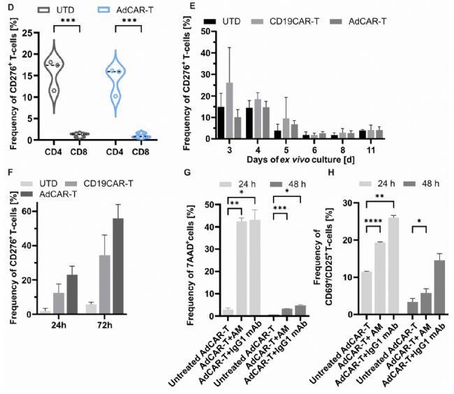 激活的 AdCAR-T 中 15–20% 表達(dá) CD276,主要見于 CD4+亞群。