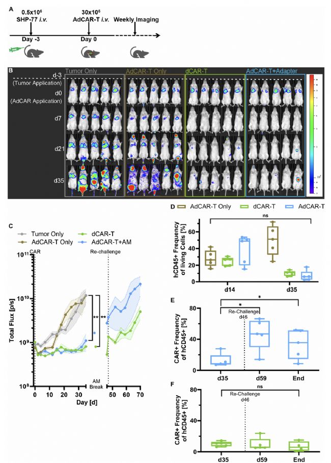 AM46 存在時(shí) AdCAR-T 早期擴(kuò)增,停藥后仍能被再次激活并清除二次攻擊瘤。