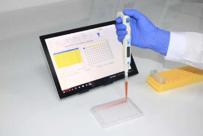 a) 根據(jù)供試品預(yù)期蛋白質(zhì)濃度,使用Pipetty Pro 精密量取適量供試品溶液精密量取適量供試品溶液,使最終吸光度落在對(duì)照品吸光度范圍內(nèi),置于具塞試管中。