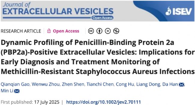 近日,上海交通大學(xué)醫(yī)學(xué)院附屬仁濟(jì)醫(yī)院聯(lián)合四川大學(xué)華西第二醫(yī)院和浙江省腫瘤醫(yī)院的多學(xué)科團(tuán)隊(duì)在 Journal of Extracellular Vesicles 發(fā)表了最新研究成果,突破了上述技術(shù)限制。該研究利用單顆粒納米檢測(cè)術(shù)(NanoFCM)實(shí)現(xiàn)了血液中 PBP2a⁺ EVs 的高靈敏及高通量定量分析,并探索了其作為生物標(biāo)志物區(qū)分 MRSA 和敏感金黃色葡萄球菌(methicillin sensitive Staphylococcus aureus, MSSA)感染的潛力。此外,通過系統(tǒng)性的動(dòng)物模型和臨床樣本驗(yàn)證,揭示了 PBP2a⁺ EVs 在感染過程中的動(dòng)態(tài)變化規(guī)律,為 MRSA 感染的早期診斷和治療監(jiān)測(cè)提供了新的方向。