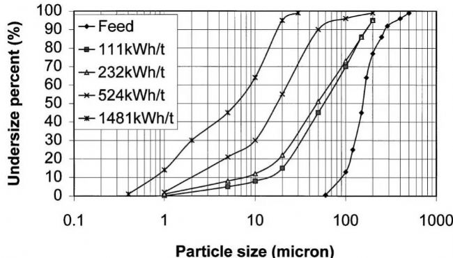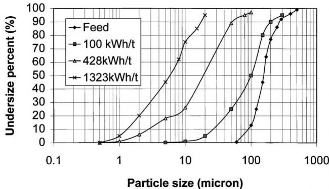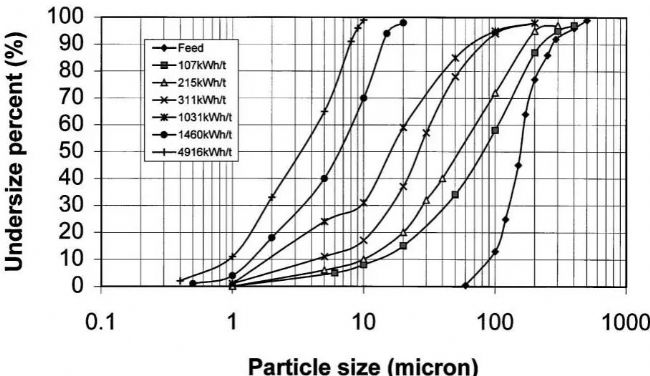通過繪制比能耗與產(chǎn)品粒徑的關(guān)系曲線,可為評估粉碎能量效率提供依據(jù).