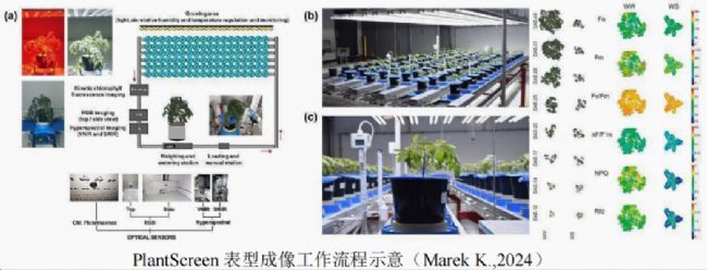 植物表型組學(xué)是通過(guò)表型分析系統(tǒng),在不利條件下篩選理想農(nóng)業(yè)性狀,研究植物發(fā)育、生理活性、健康狀態(tài)的學(xué)科。該方法采用綜合技術(shù)手段,能動(dòng)態(tài)評(píng)估植物的應(yīng)激反應(yīng),具備高時(shí)間分辨率優(yōu)勢(shì)。借助集成式高通量植物表型分析平臺(tái),結(jié)合成像傳感器、機(jī)器人技術(shù)和計(jì)算機(jī)視覺(jué)技術(shù),可實(shí)現(xiàn)對(duì)多種植物性狀的動(dòng)態(tài)無(wú)損檢測(cè)。通過(guò)篩選生長(zhǎng)速率、光合活性和耐溫性等表型特征來(lái)評(píng)估植物在非生物脅迫下的表現(xiàn),對(duì)于篩選抗逆性優(yōu)良品種至關(guān)重要。