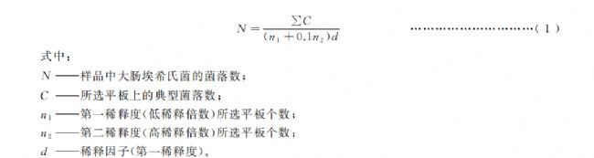 ② 若有兩個連續(xù)稀釋度的平板上典型菌落數(shù)在計數(shù)范圍內(nèi)時,結(jié)果按式(1)計算: