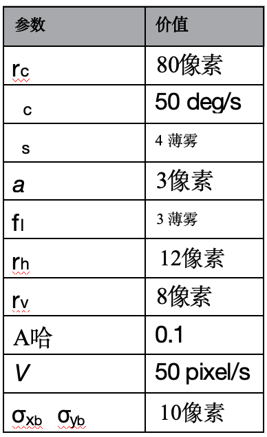 表6.跟蹤評估使用的模擬參數(shù)