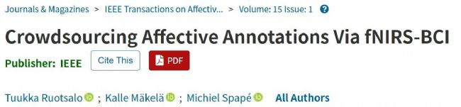Ruotsalo T, Mäkelä K, Spapé M. Crowdsourcing Affective Annotations Via fNIRS-BCI[J]. IEEE Transactions on Affective Computing, 2024, 15(1): 297-308.