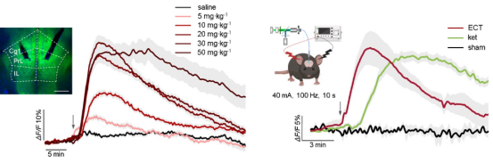 圖1. 氯胺酮(Ketamine)和電休克療法(ECT)誘導(dǎo)內(nèi)側(cè)前額葉皮層腺苷激增