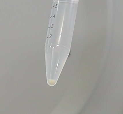 第一種是正常情況,分成三層(如下圖),此時(shí)棄掉上清和基質(zhì)膠層,保留細(xì)胞團(tuán)沉淀即可。