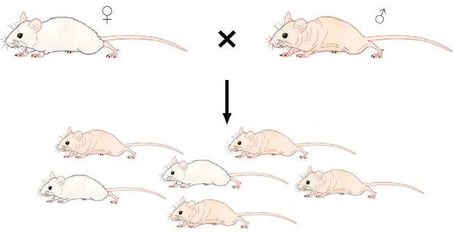 例如:雌性裸鼠的繁殖能力很差,只有2.5月齡到4月齡的雌鼠才有生育能力。所以裸鼠的繁育是通過雄性純合子與雌性雜合子來完成的。