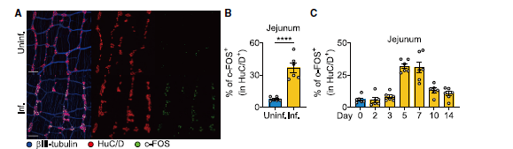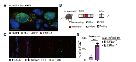 本研究團(tuán)隊(duì)通過(guò)單細(xì)胞測(cè)序、基因編輯小鼠模型等技術(shù),首次揭示:寄生蟲(chóng)感染后,ILC2 分泌的 IL-13 會(huì)激活表達(dá) IL-13R 的 iENs 亞型(IPANs),被激活的 iENs 則通過(guò)分泌 β-CGRP 反向抑制 ILC2 活性,形成 “激活 - 抑制” 的雙向負(fù)反饋。這一機(jī)制既避免了免疫過(guò)度激活損傷腸道,也在一定程度上削弱了宿主的抗寄生蟲(chóng)能力,為寄生蟲(chóng)感染治療與炎癥調(diào)控提供了全新靶點(diǎn)。