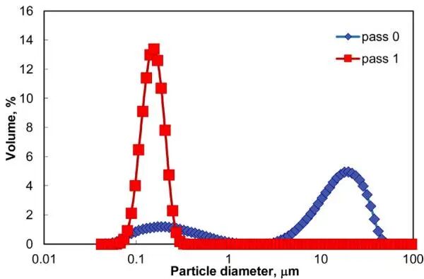 使用微射流均質(zhì)機(jī)獲得的細(xì)顆粒的索特平均直徑